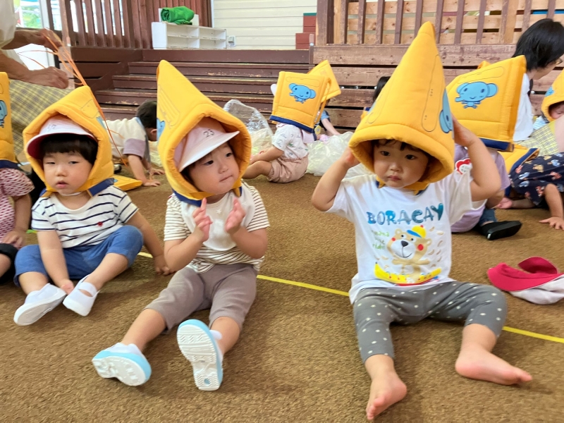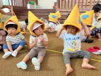 防災頭巾をかぶったよ。