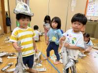 新聞紙で変身。